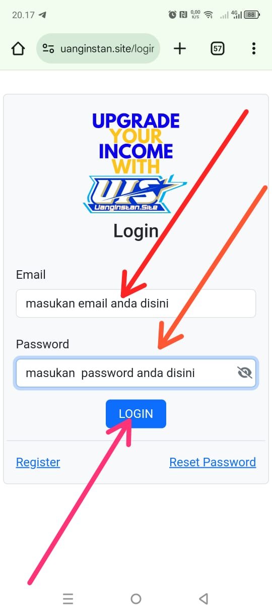 2. Masukan Email & Password yang sudah anda daftarkan lalu KLIK LOGIN.